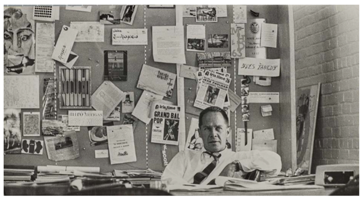 Eliot Noyes in front of the IBM Pavilion, San Antonio, Texas. 1968, with the redesigned IBM logo (by Paul Rand). The IBM corporate program integrated Graphics, Architecture, Industrial Design in the heart of the IBM corporate structure. The success of the program demonstrated to the corporate world that “Good Design is Good Business.”
